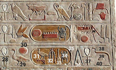 Assalamu'alaikum wrm wbr. Saya usahakan membaca tulisan hieroglyph ini dengan singkat semoga bermanfaat. Huruf hieroglyph yang kelihatannya hanya sedikit ini ternyata kalau ingin benar-benar memahami diperlukan keterangan yang panjang.
